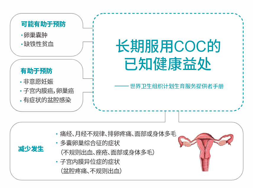 复方口服避孕药(COC):在每天同一时间服用,连续21天或者28天,当月经来潮以后,开始下一个周期的服用,它的成功率可以达到99%以上。